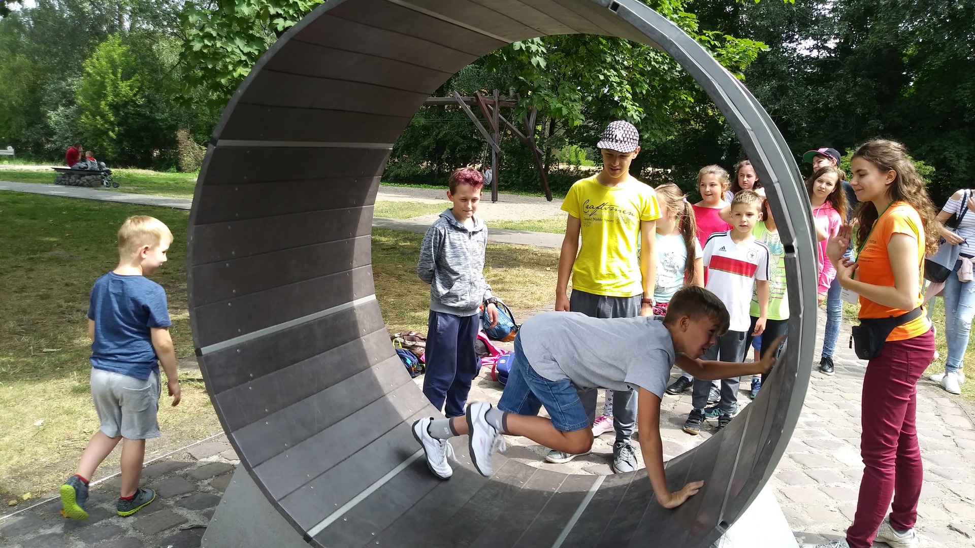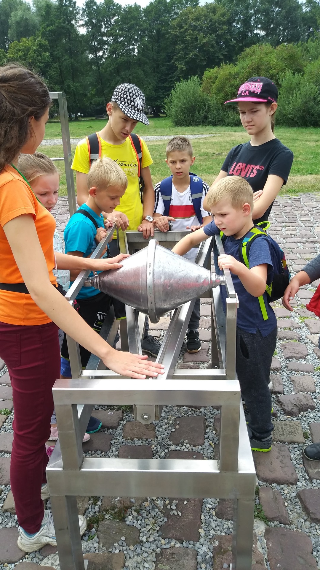 Przed południem udaliśmy się do Ogrodu Doświadczeń im. Stanisława Lema, gdzie w towarzystwie przewodnika korzystaliśmy z urządzeń przybliżając nam prawa fizyki i przyrody. Świat zaczyna nas dziwić coraz bardziej, a to dopiero początek. Każde z urządzeń prezentuje jedno lub kilka zjawisk. Modele zostały zaprojektowane i wykonane przez zespół krakowskich ekspertów reprezentujących różne dziedziny wiedzy, jak architektura, fizyka czy dydaktyka.