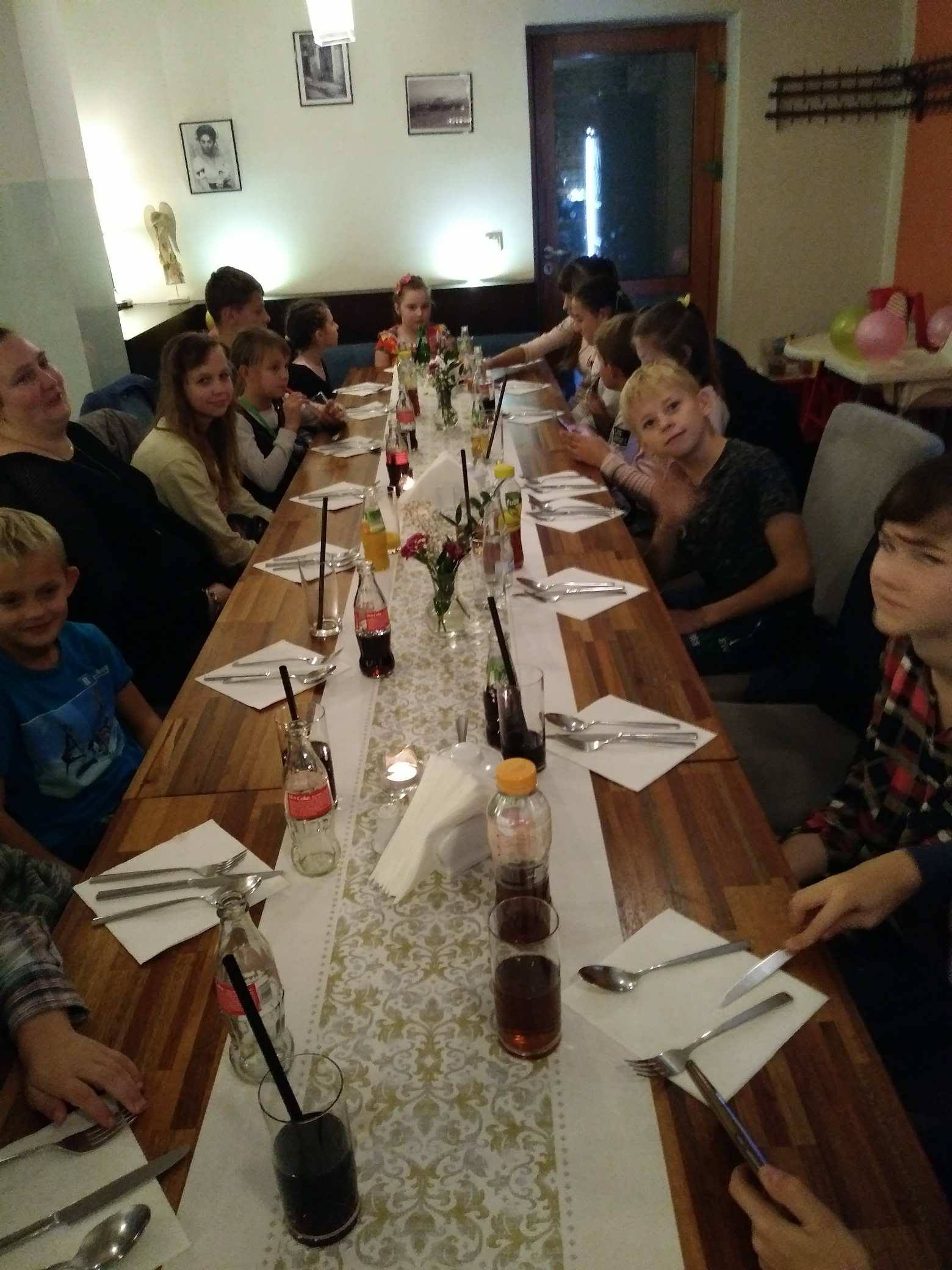 W dniu 31 października 2018r. 15 dzieci wspólnie z opiekunami udali się do restauracji TRATTORIA & CAFFE przy ul. Wazów 8 w Nowym Sączu. Karta menu była bogata w dania włoskie, kelnerzy z pełnym zaangażowaniem przyjęli zamówienie od każdego gościa. Dania wszystkim bardzo smakowały. Dzieci rozwijały swoje kompetencje społeczne i obywatelskie. We włoskiej restauracji dzieci miały możliwość poznać nowe konteksty społeczne oraz okazję obserwować nowe wzory zachowań.
